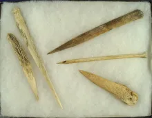 Nice set of five bone awls and tools found near the Missouri River in South Dakota. |