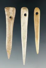 Set of three nice drilled bone needles or all found in Tennessee, largest is 3 1/8". | TENNESSEE | 80.00 | |