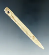 3 11/16" nicely polished perforated bone awl or needle found in Tennessee. |