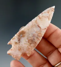Excellent flaking and style! 2 11/16" stemmed point - pink and white chalcedony found in Utah.. |