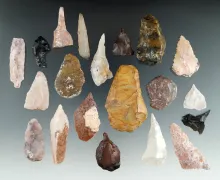 Group of 20 assorted arrowheads and Knives found in Utah, largest is 1 5/8". |