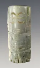 1 7/8" Fine penate figure, Mixtec, Oaxaca State, Mexico, 900-1400 CE, green and cream jade. |